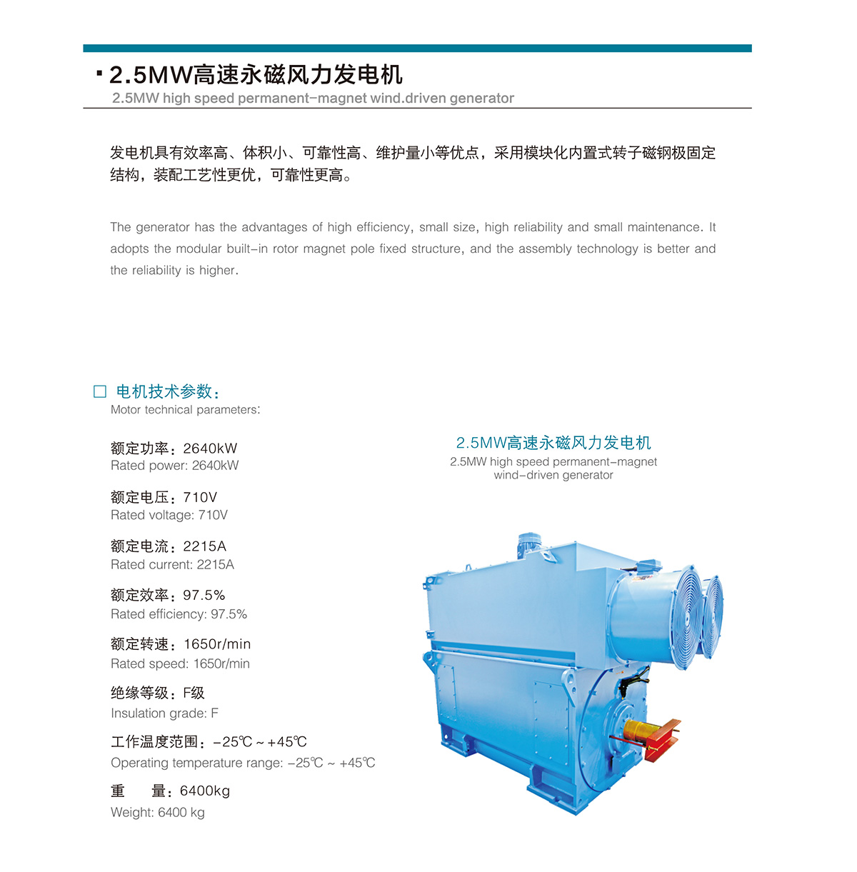 2.5MW高速永磁风力发电机