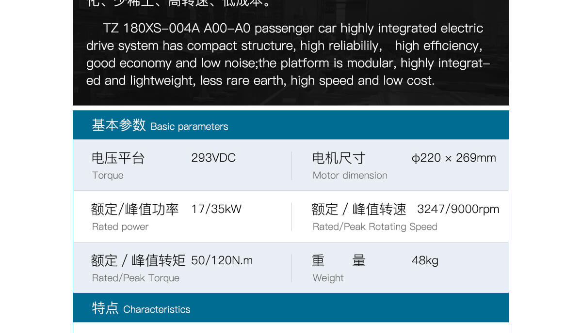 TZl 80XS-004A Highly integrated electric drive system to passenger vehicles Class AOO-AO